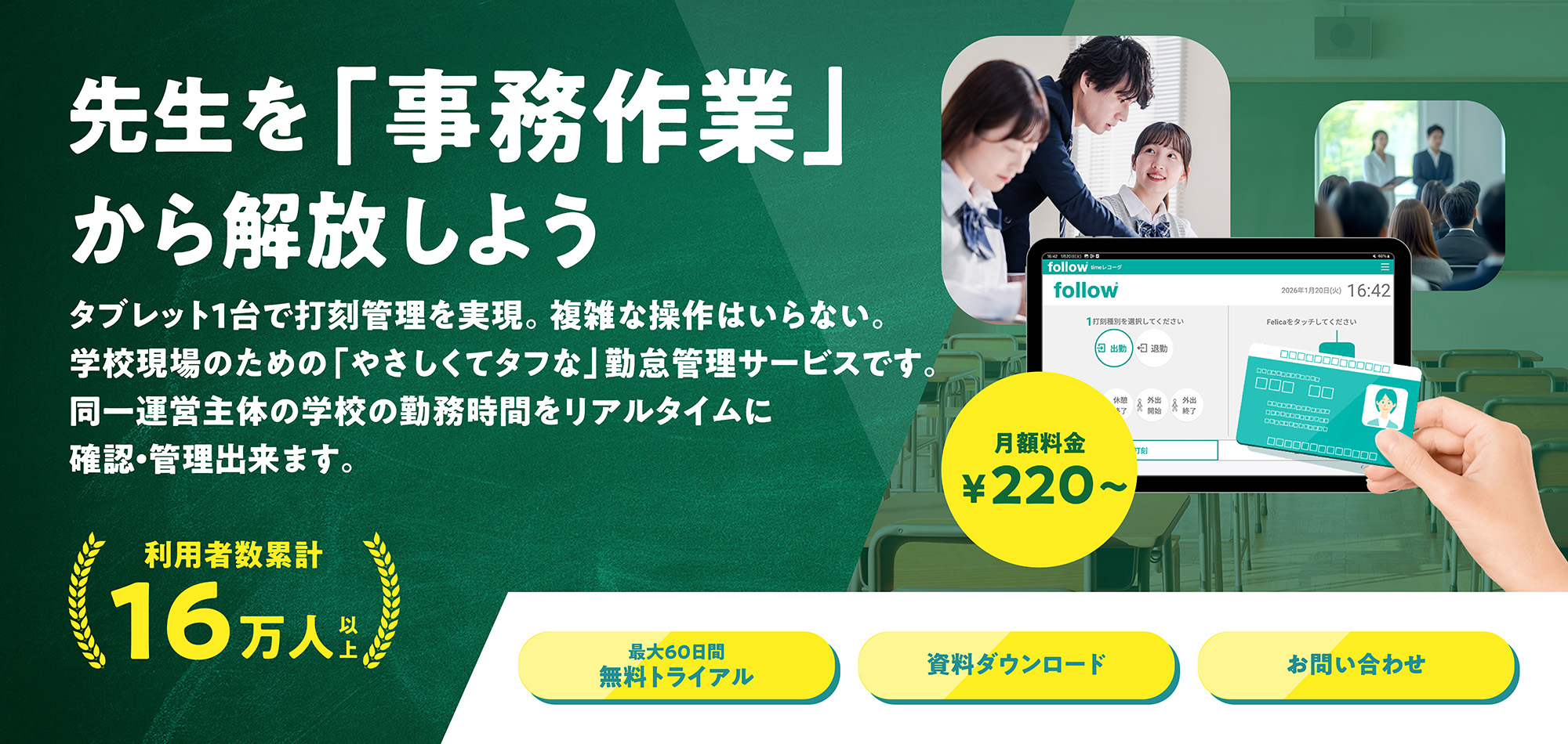 教職員の在校時間を見える化し、業務の負担を軽減。本来の業務である教育の活動により専念できる環境に!